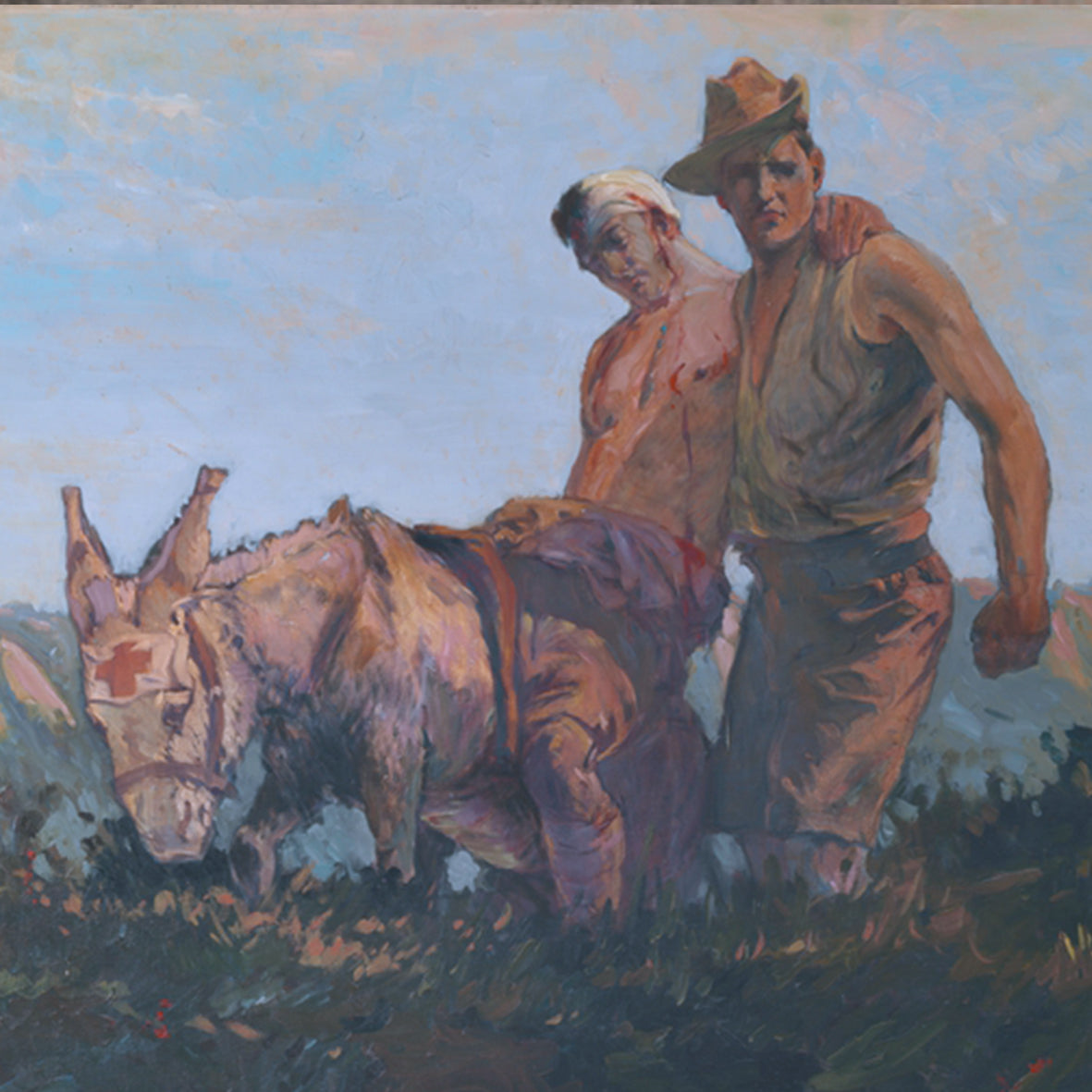 John Simpson Kirkpatrick was born in England to Scottish parents and worked with donkeys in his youth. In 1909 he joined the British merchant navy and in 1910 deserted ship in NSW and travelled Australia. Simpson enlisted in the Australian Imperial Force in 1914 as stretcher bearer – a role for physically strong men. During the Gallipoli campaign Simpson used at least five donkeys to carry an estimated 300 injured soldiers to medical care. Then Colonel John Monash noted “Simpson knew no fear and moved unconcernedly amid shrapnel and rifle fire.” On 19 May 1915 Simpson was killed by machine gun fire.
