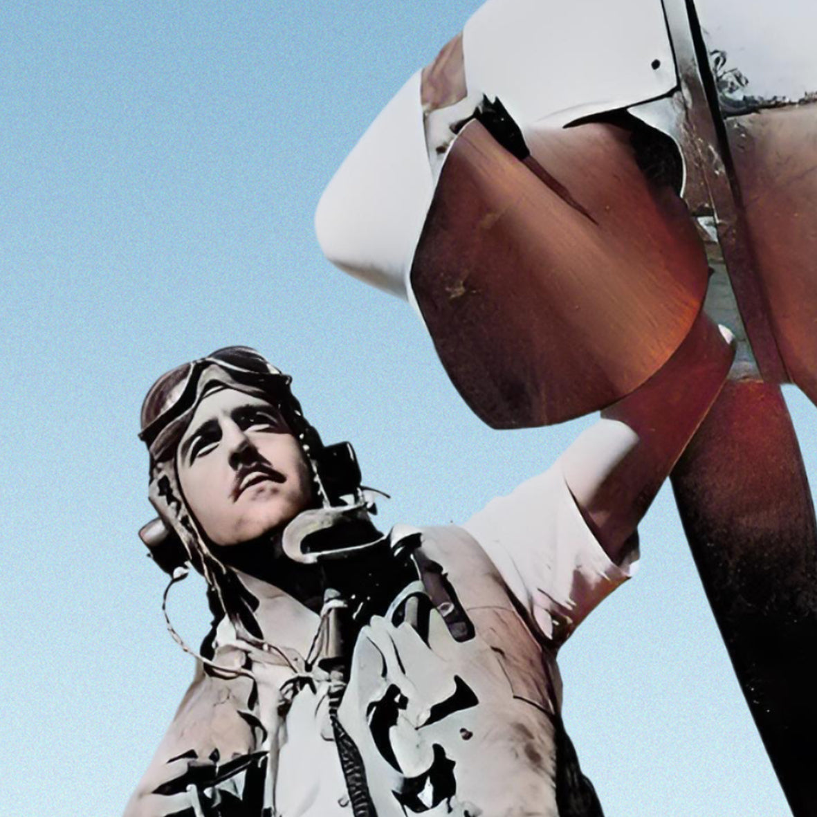 Clive Caldwell born in Sydney 1911 joined the RAAF in 1940 as a pilot and flew in the North African campaign, mainly in P-40 Tomahawks. His first victory was against a Bf109E, and he would claim 22 victories including 5 in one day in North Africa. Recalled to defend Australia against Japanese air raids, he was placed in charge of No 1 Fighter Wing equipped with three squadrons of Spitfires. Caldwell would claim a further 6.5 Japanese aircraft resulting in a tally of 28.5 enemy aircraft destroyed – Australia’s highest. Post-war he led a successful importing company in Sydney.